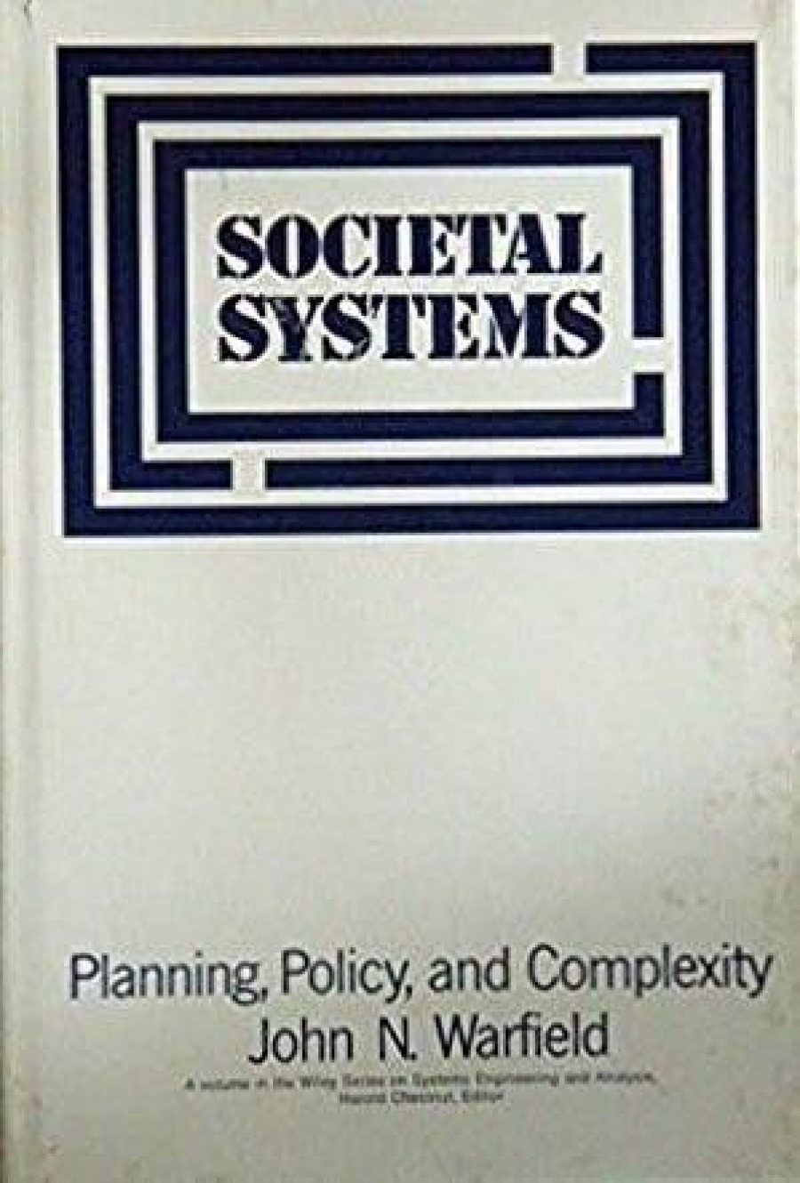 There is at last a digitized version file of not quite an entire book, which we are carefully saving until next phase. The filename is: "Societal Systems John N. Warfield.pdf" (date Feb 2014) More later. R,W, 2/14/14.. Here is more: Dan Warfield got an edited version completed scanned by March 2014 with the missing pages added and the corrections, and it is the copy he hopes to print and publish as the REPRINT. The filename is: "2014-03-09 Societal Systems" John N. Warfield-edited.